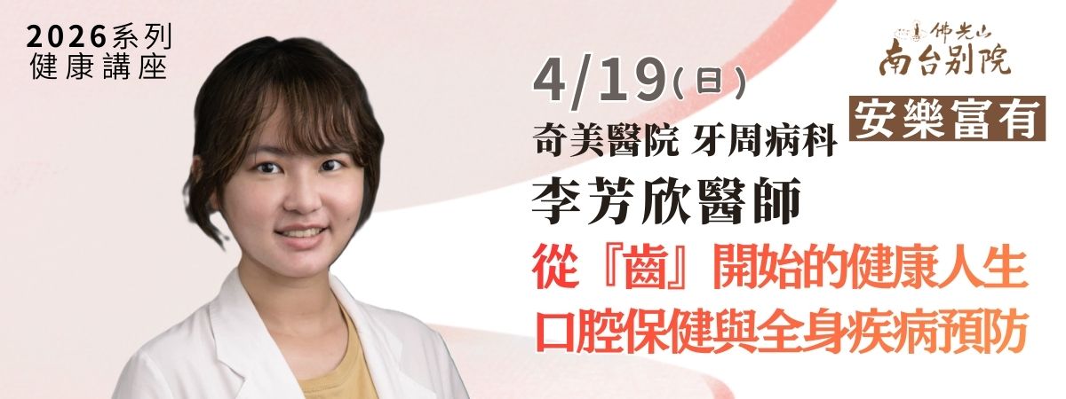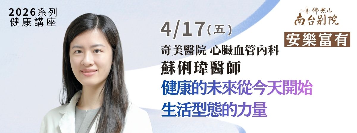 在現代忙錄的生活中,健康常常被忽視。佛光山南台別院邀請您參加由台南奇美醫院專業醫療團隊主辦的健康講座,提供您最新的健康知識與實用的健康管理方法。讓我們一起關注身心健康,學會如何照顧自己與家人!
